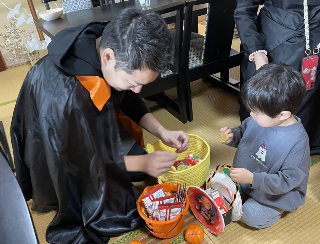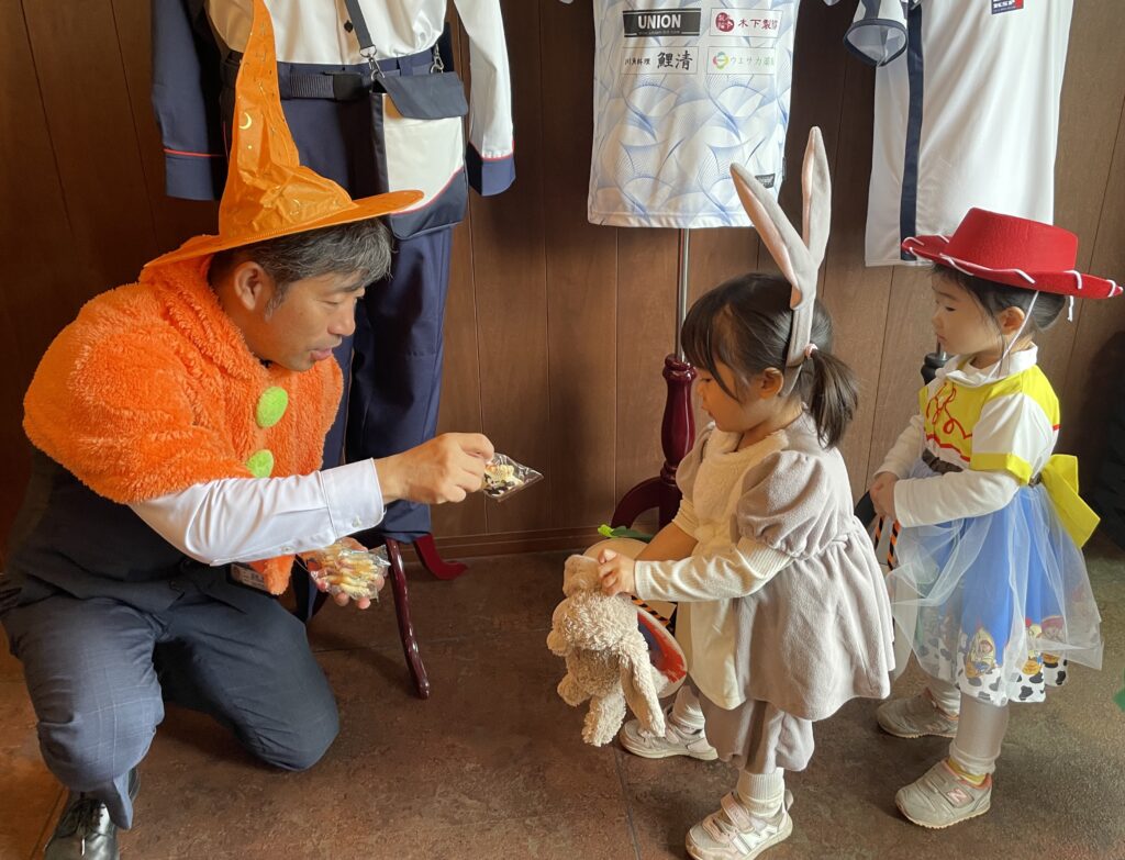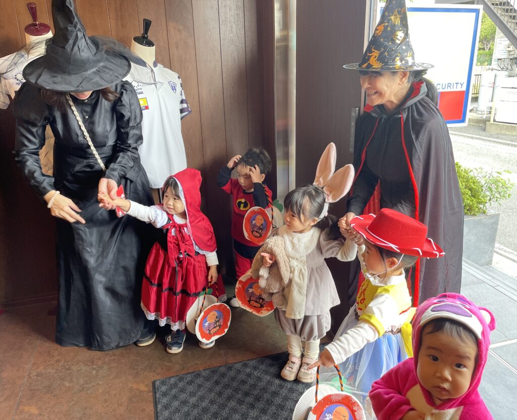 仮装して出迎えてくださった、園長先生やKSPの皆さまにお菓子をいただきました。