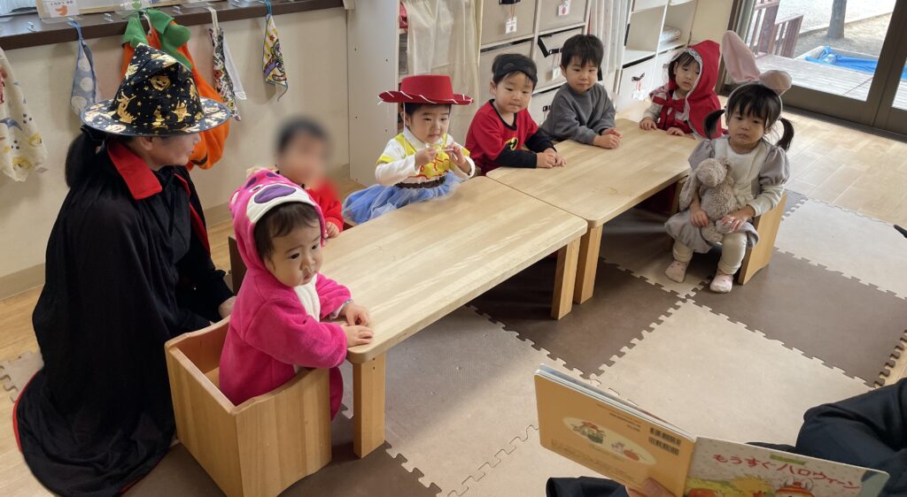 出発前にはハロウィンの絵本を見て、イメージはバッチリ♪